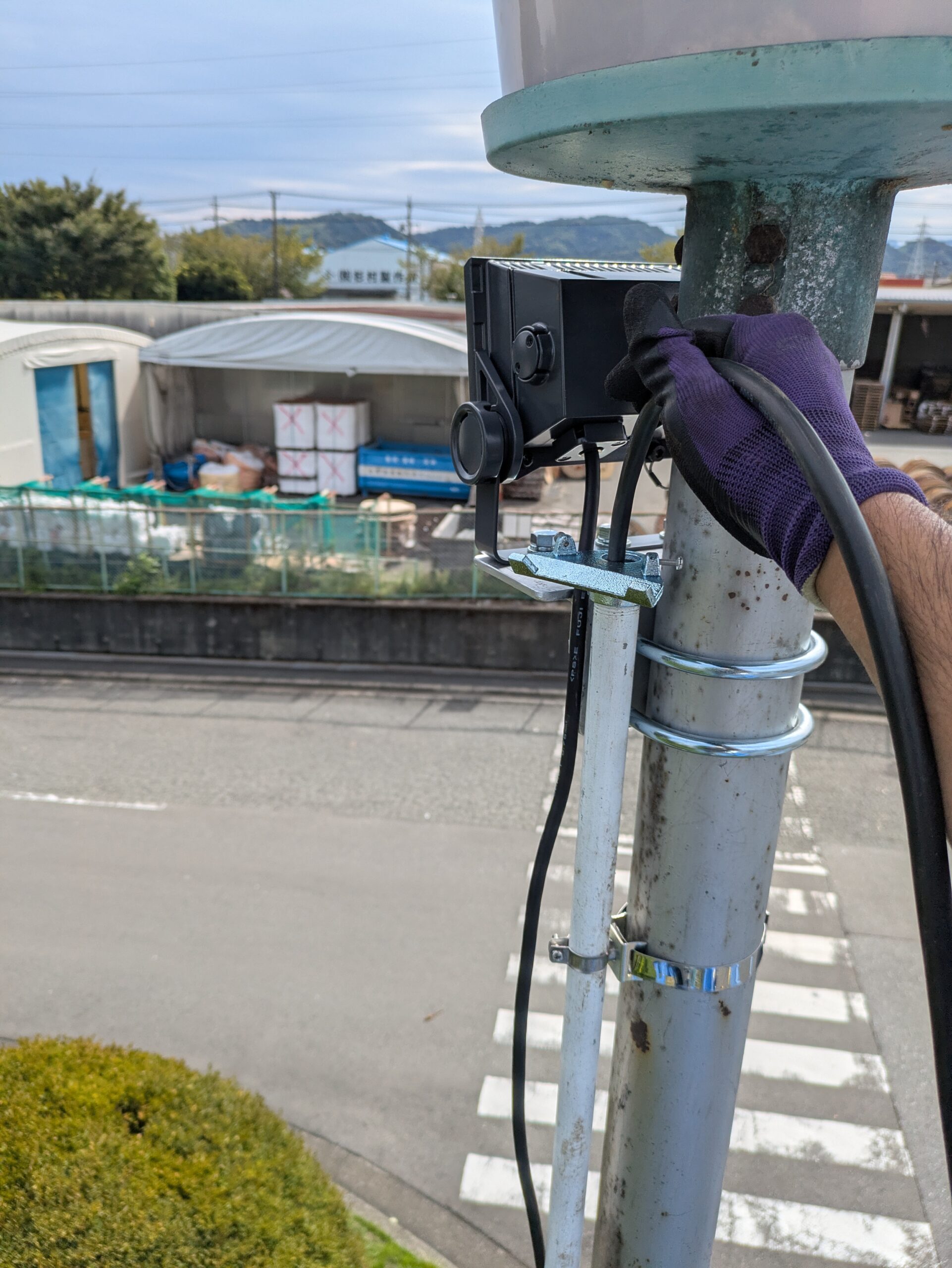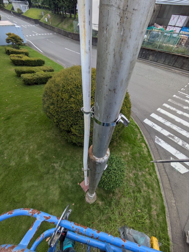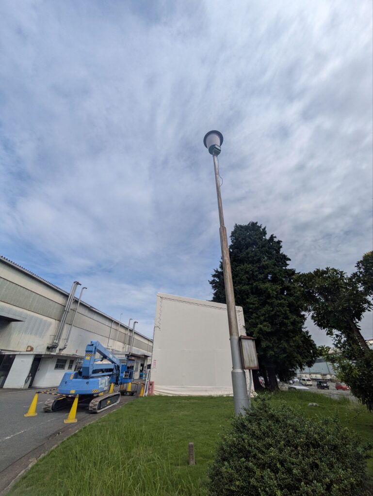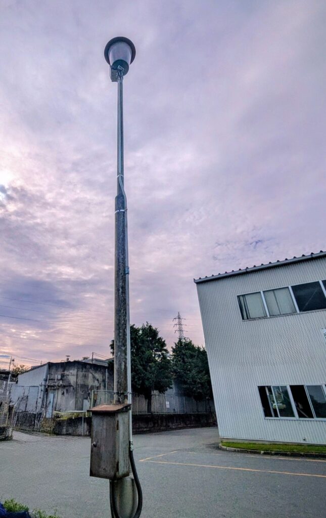 こちらの外灯ポールに追加で投光器型の照明を付けさせて頂きました。